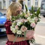 "Elegancki Szept" to bukiet, który zachwyca swoją subtelną elegancją i delikatnością. Składa się z różnorodnych kwiatów w odcieniach bieli, kremu i jasnego różu, które otulone są pastelowym papierem. To kompozycja stworzona z myślą o tych, którzy cenią sobie klasyczną estetykę i wyrafinowany styl. Każdy element bukietu został dobrany z najwyższą starannością, aby stworzyć harmonijną całość, która oczaruje każdego.
